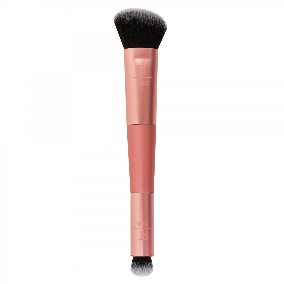 Το Real Techniques Set + Bake 2-in-1 Brush είναι ένα πινέλο μακιγιάζ διπλού άκρου για την τοποθέτηση της πούδρας με το φαρδύ άκρο αλλά και τη στοχευμένη τοποθέτηση πούδρας σε ιδιαίτερα σημεία με το λεπτό του άκρο.