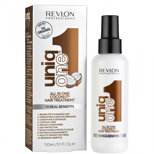 Η Revlon UniqOne Hair Treatment μάσκα σε μορφή σπρέι αναδομεί τα μαλλιά χάρη στα 10 πραγματικά οφέλη που προσφέρει: