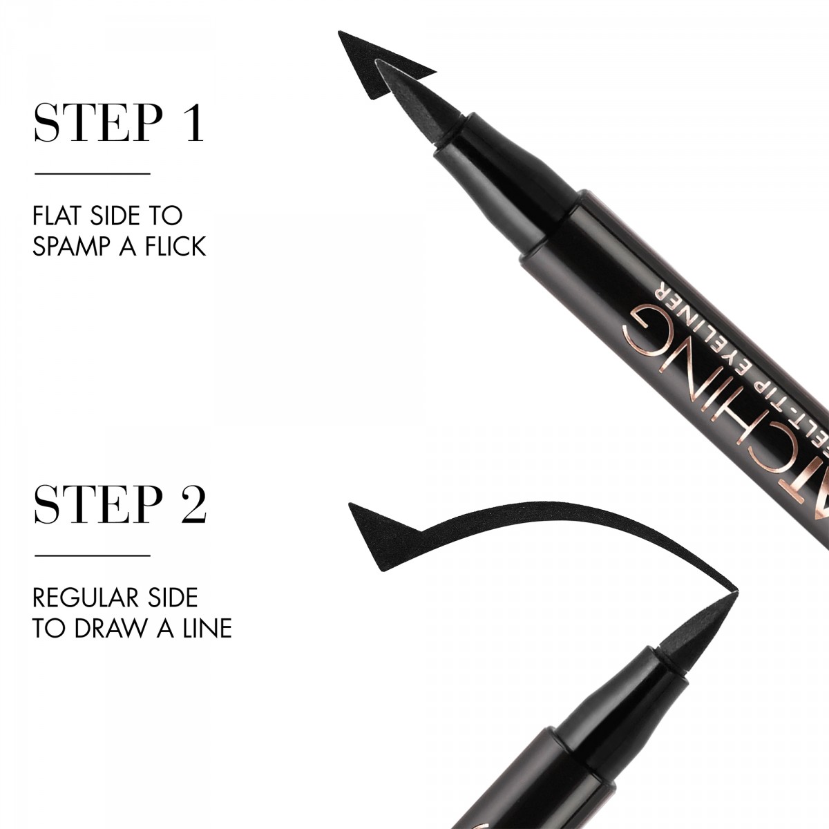Το μυστικό κρύβεται στης νέας γενιάς επίπεδης μύτης από τη μία πλευρά, που σχεδιάζει μια ακριβή γραμμή και σας επιτρέπει να σχεδιάσετε την άκρη του cat-eye σε 2 μόλις βήματα.