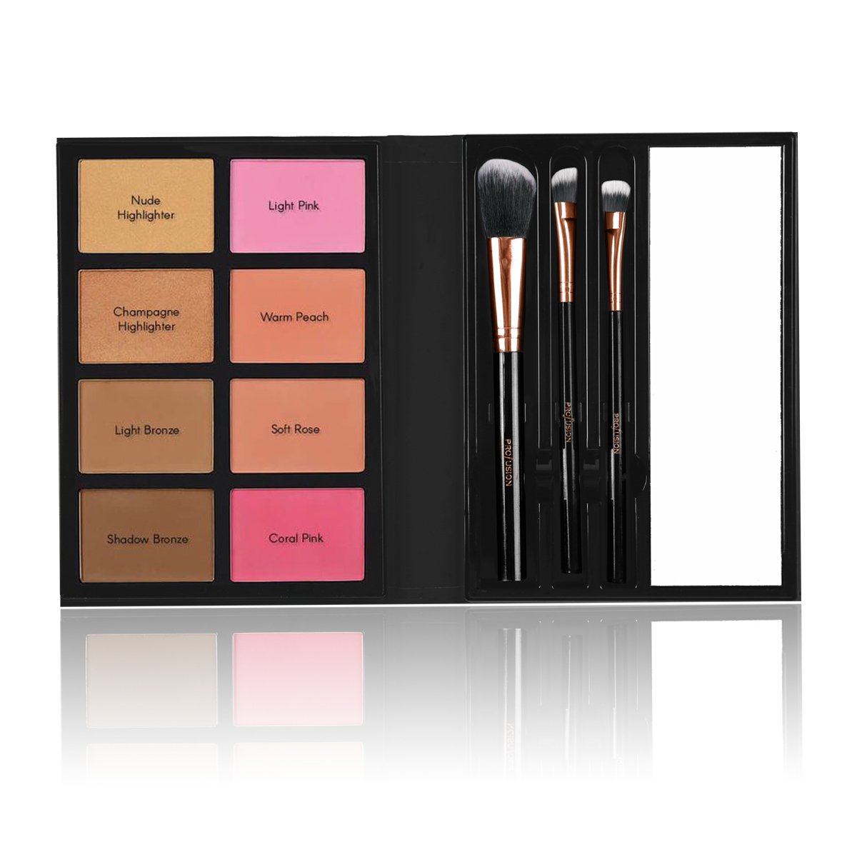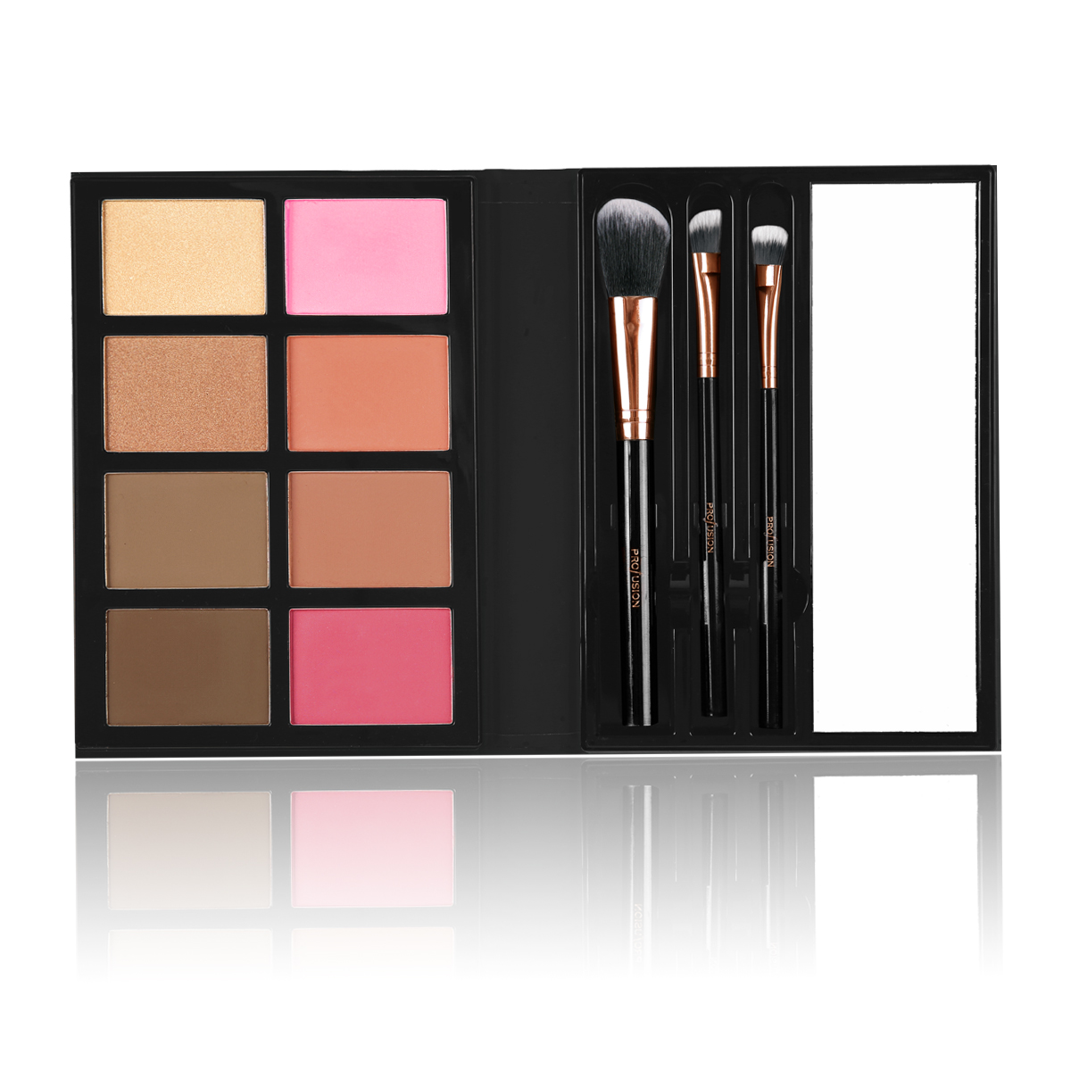 Περιέχει 4 ρουζ, 2 Contouring Bronzers, 2 λαμπερά Highlighters, ένα μεγάλο καθρέφτη και 3 πινέλα για την τέλεια εφαρμογή τους.