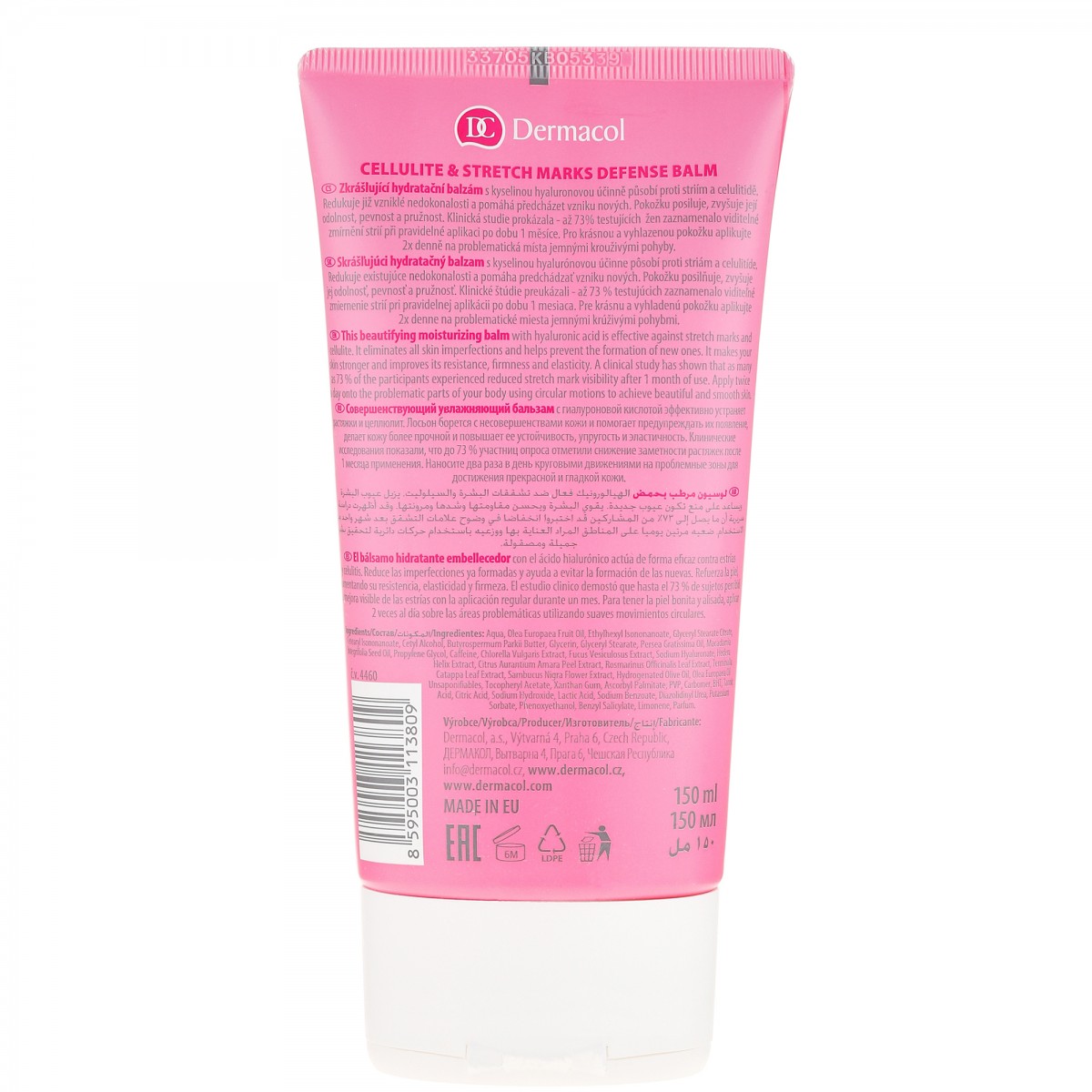 Το Dermacol Love My Body Cellulite and Stretch Marks Defense Balm είναι ένα καλλυντικό ενυδατικό προϊόν που περιέχει υαλουρονικό οξύ, το δραστικό συστατικό Dermochlorella και ένα σύμπλεγμα φυτικών εκχυλισμάτων και είναι αποτελεσματικό κατά των ραγάδων και της κυτταρίτιδας.