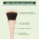 Το EcoTools 360 Ultimate Sheer Foundation Brush είναι ένα πινέλο το οποίο χρησιμοποιείται καλύτερα με προϊόντα σε μορφή πούδρας και αποτελείται από μαλακές τρίχες που βοηθούν στη δημιουργία μιας ελαφριάς βάσης για μία φυσική εμφάνιση.
