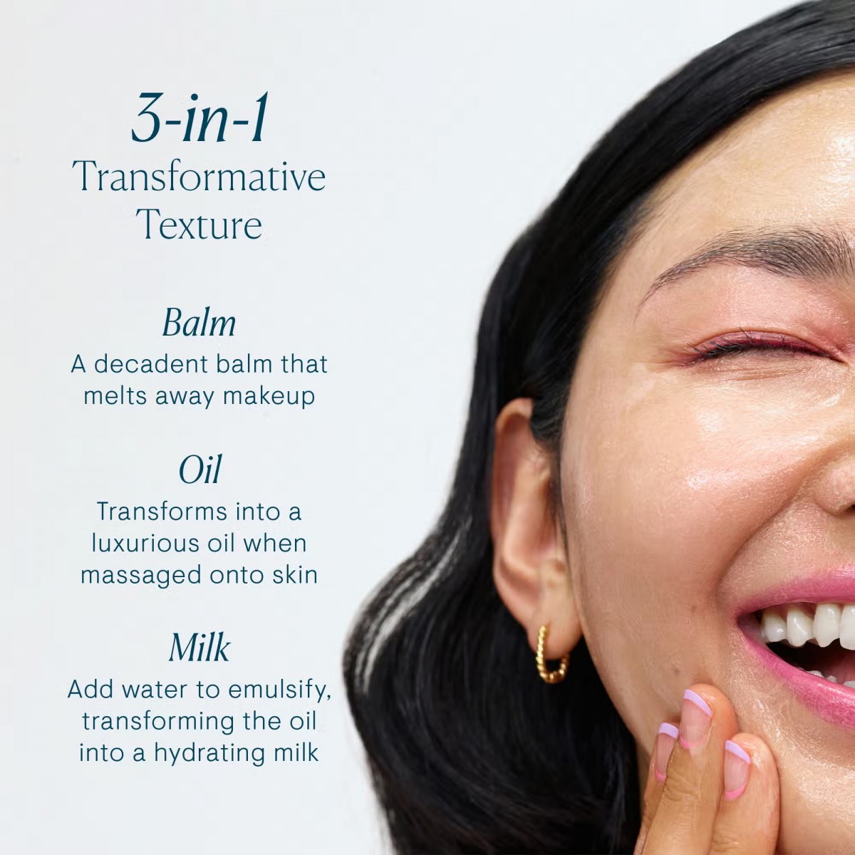 Απολαύστε την εμπειρία των τριών πολυτελών υφών σε μία σύνθεση. Το πλούσιο balm λιώνει σαν ένα πολυτελές έλαιο κάνοντας μασάζ στο δέρμα και μεταμορφώνεται σε ένα ενυδατικό γαλάκτωμα όταν έρχεται σε επαφή με το νερό.