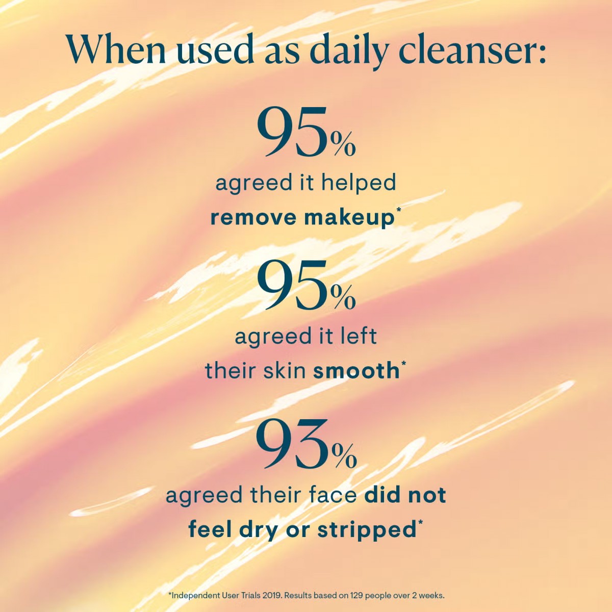 Η λαμπερή, βουτυρώδης φόρμουλα μπορεί να χρησιμοποιηθεί ως καθημερινό καθαριστικό, ως μάσκα για βαθύ καθαρισμό ή ως ενυδατικό ντεμακιγιάζ για τα μάτια και το πρόσωπο.