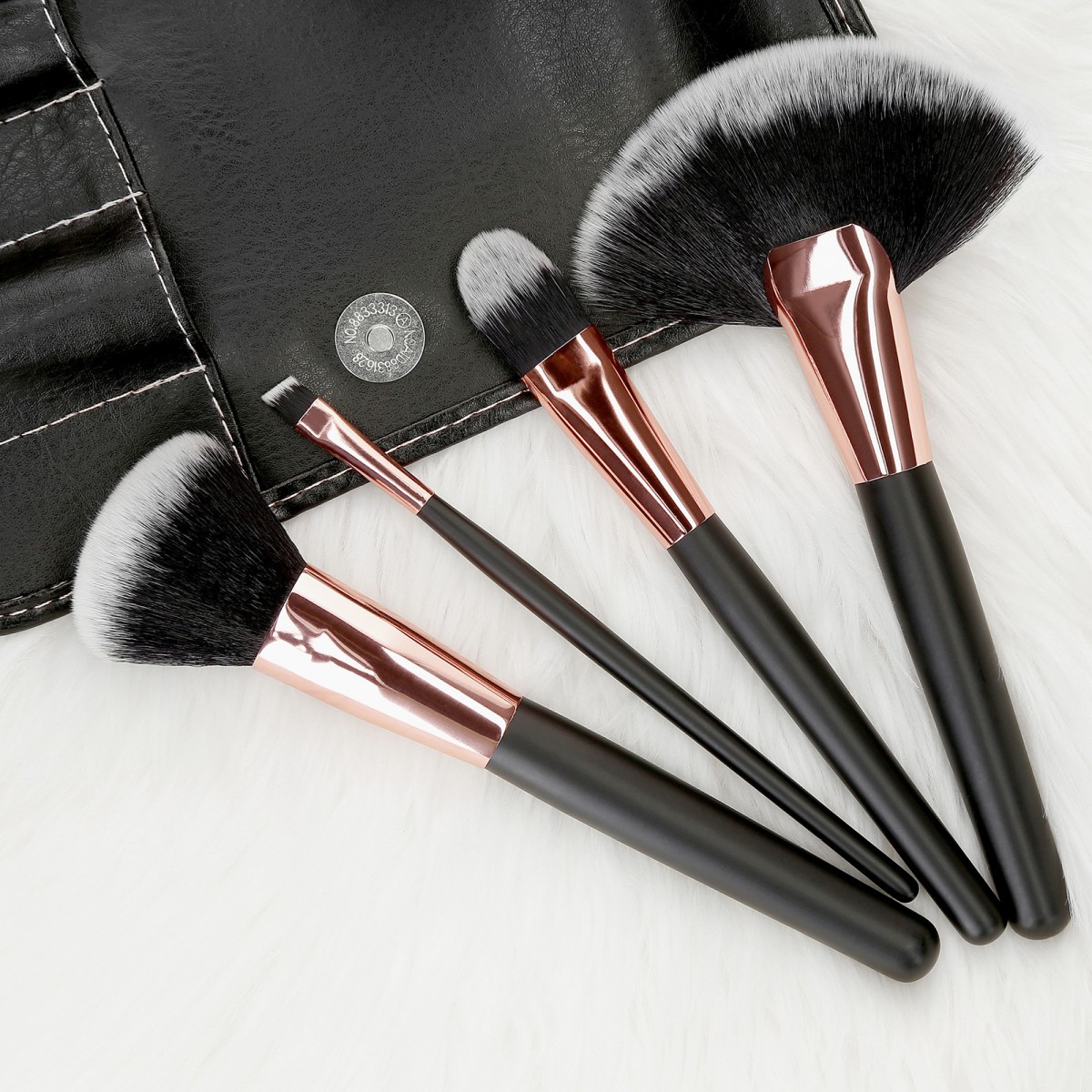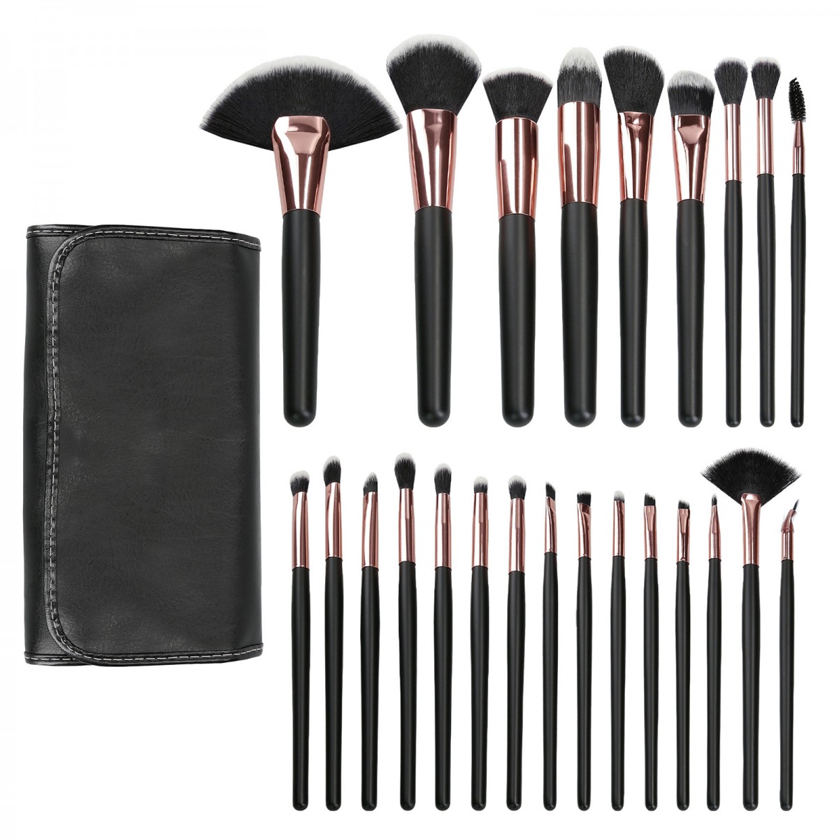 MIMO 24Pcs Makeup Brush Set with Pouch - Black Rose Gold
