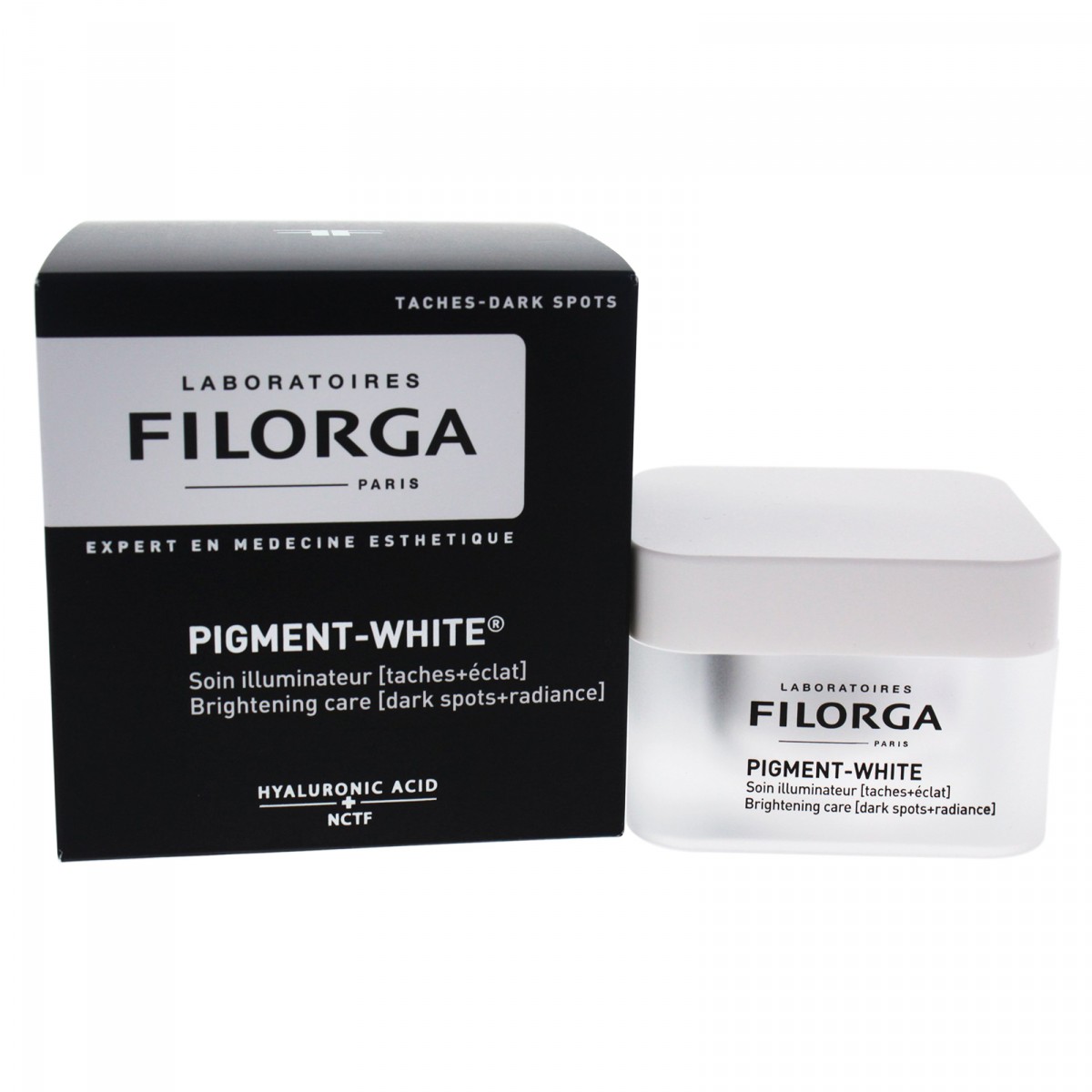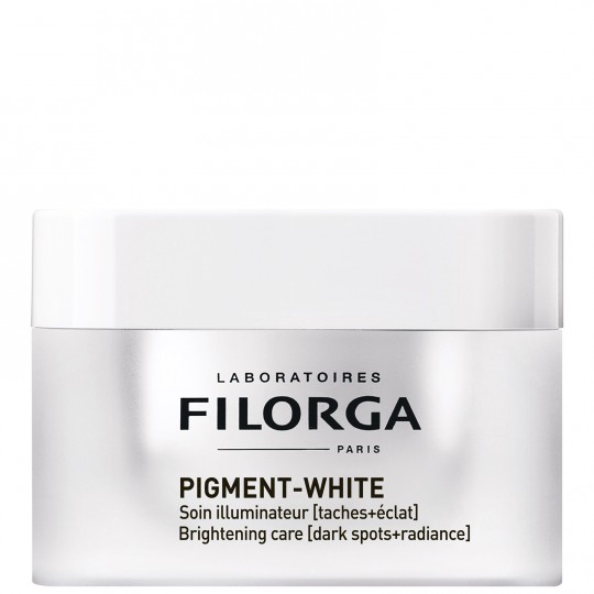 Η κρέμα προσώπου Filorga Pigment-White Even Complexion Illuminating πραγματοποιεί διόρθωση κηλίδων 3 σημείων (άμεση + ισχυρή + μακράς διάρκειας) στην επιδερμίδα, μειώνοντας ορατά τις πανάδες χάρη στα ισχυρά λευκαντικά στοιχεία που περιέχει και περιορίζοντας την επανεμφάνιση τους.
