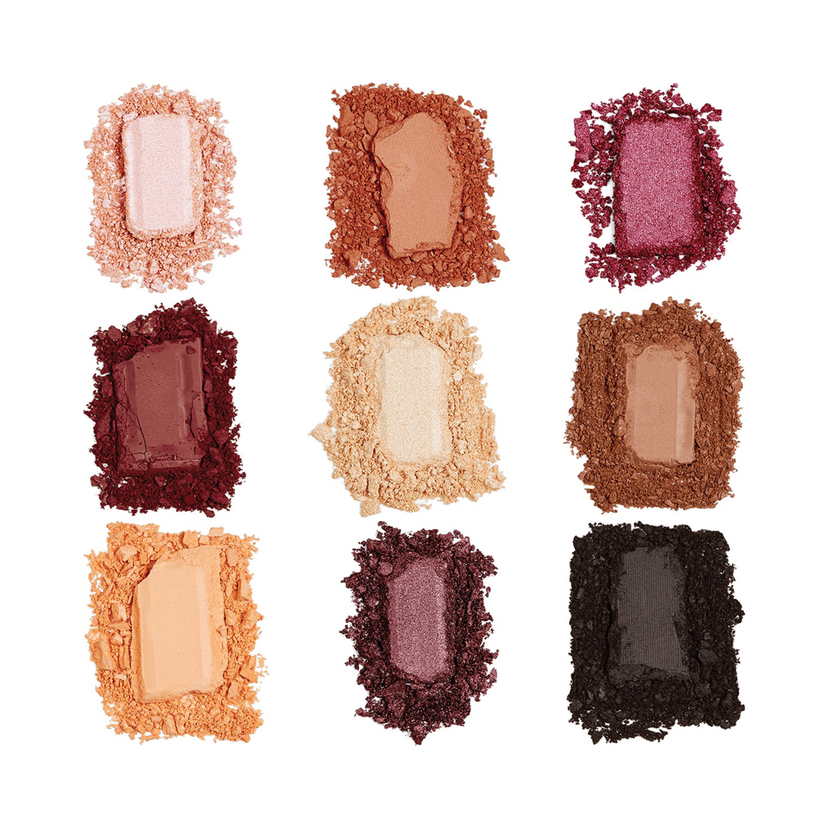 Μια παλέτα με σκιές ματιών υψηλής χρωματικής απόδοσης και με αποχρώσεις που κυμαίνονται από καφέ ανοιχτό μέχρι και καφέ σοκολατί, μπεζ, ροδακινί, τόνους του κίτρινου, του χρυσού, του μαύρου και του κεραμιδί.
