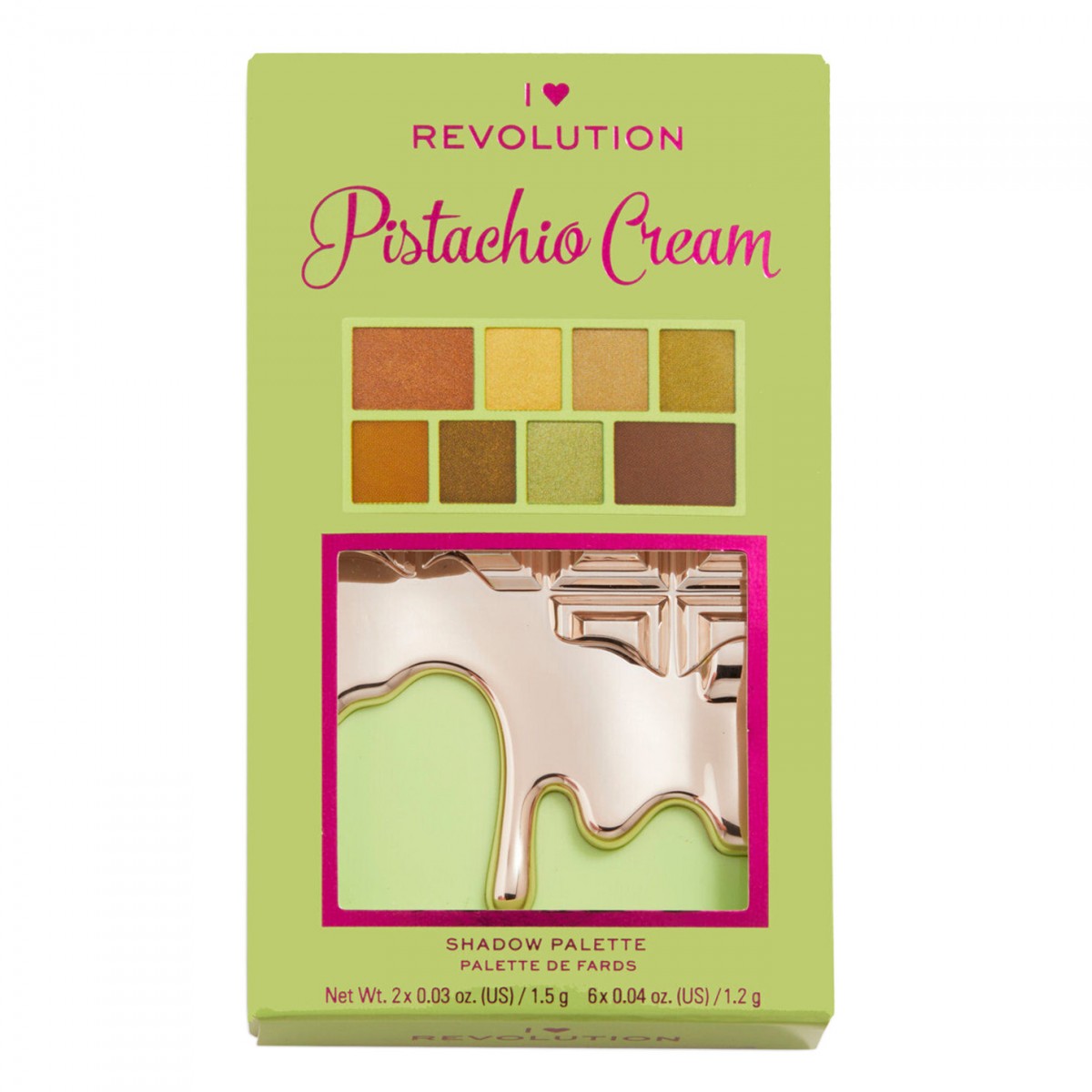 Η I Heart Revolution Mini Chocolate Eyeshadow Pistachio Cream παλέτα, αποτελείται από 8 ματ, shimmer και glitter foil σκιές σε υπέροχες ψυχρές σοκολατί και φυστικί αποχρώσεις και οι οποίες περιλαμβάνονται σε μεταλλική συμπαγή σοκολατένια θήκη, ιδανική για να δημιουργήσετε πολλές και διαφορετικές εμφανίσεις.