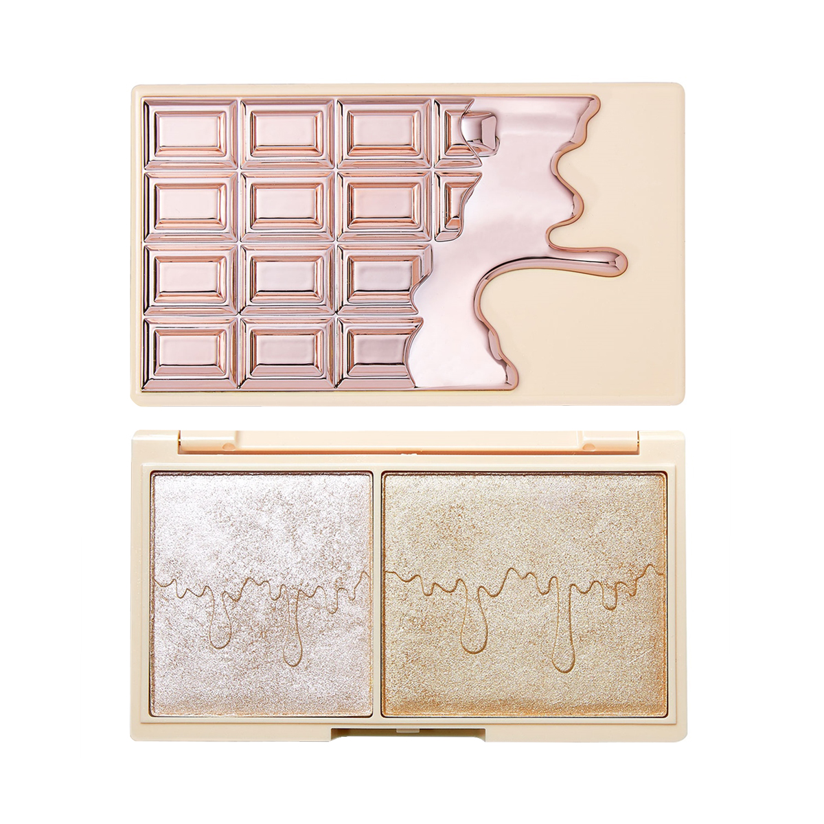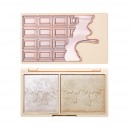 Η παλέτα περιλαμβάνει τις αποχρώσεις του ροζ-χρυσού και του μαργαριταρένιου-χρυσού με λευκό υποτόνο, που περιλαμβάνονται σε μια χαριτωμένη σοκολατένια συσκευασία.