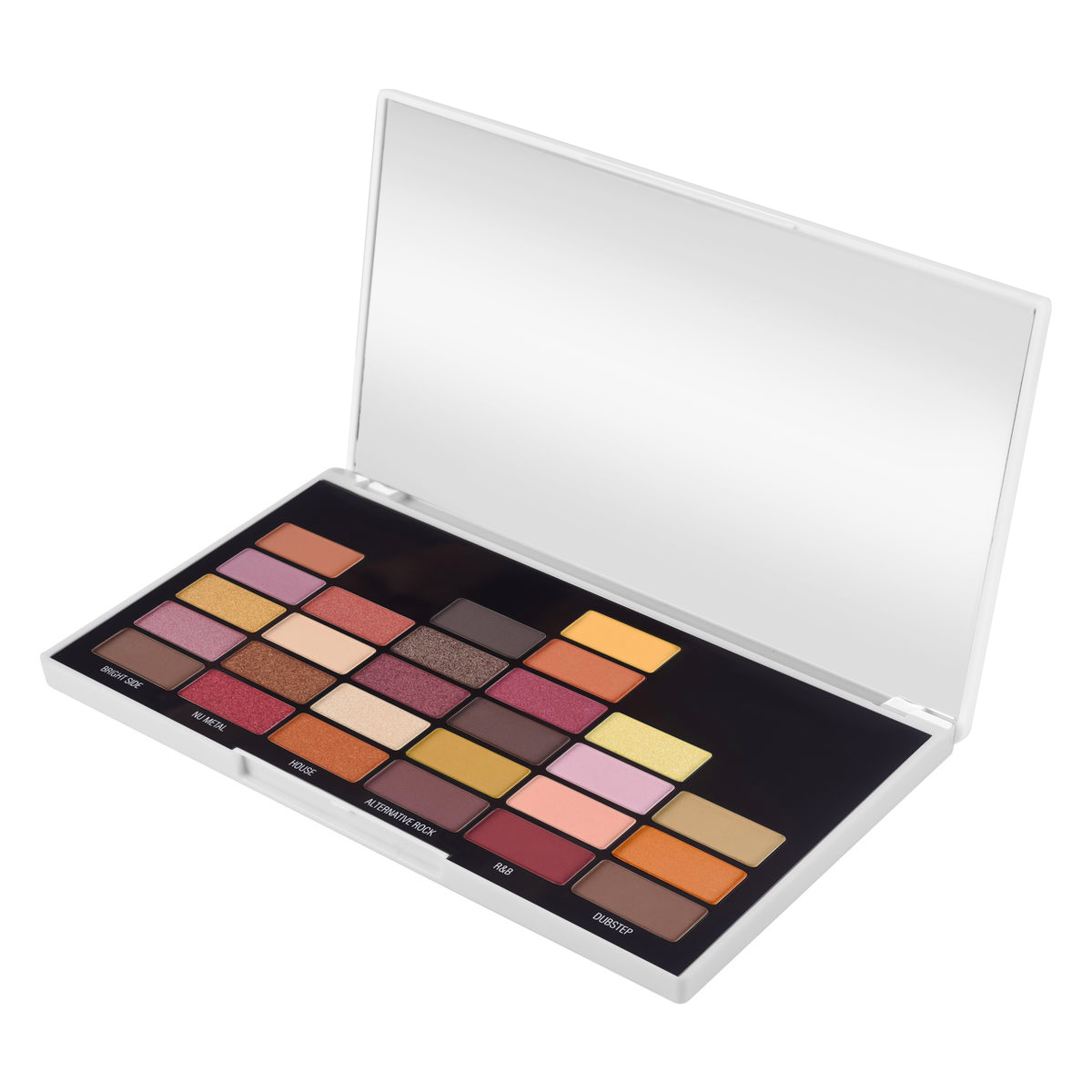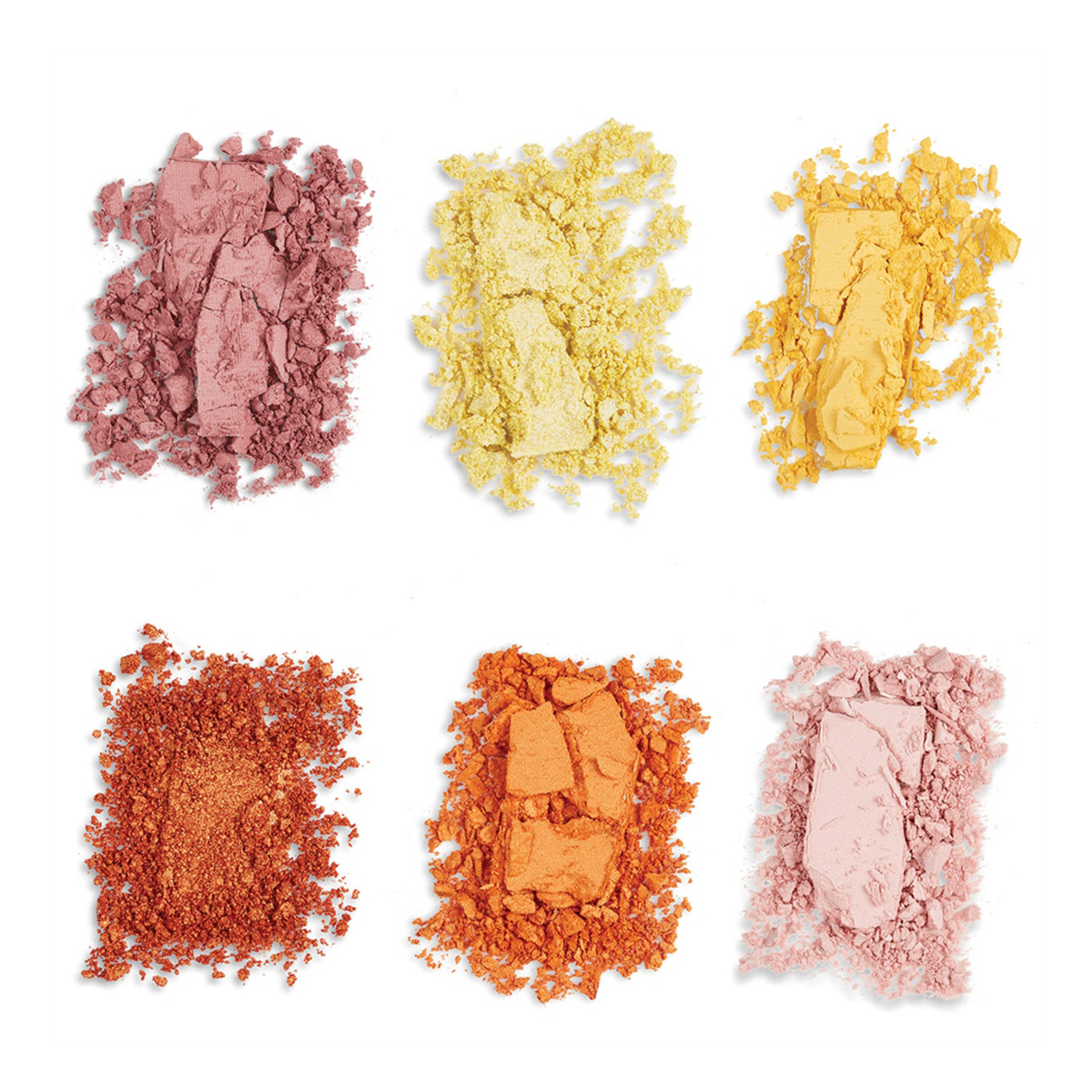 Στην παλέτα περιέχονται αποχρώσεις σκιών σε λιλά, μουσταρδί, κόκκινους, πορτοκαλί και καφετί τόνους.