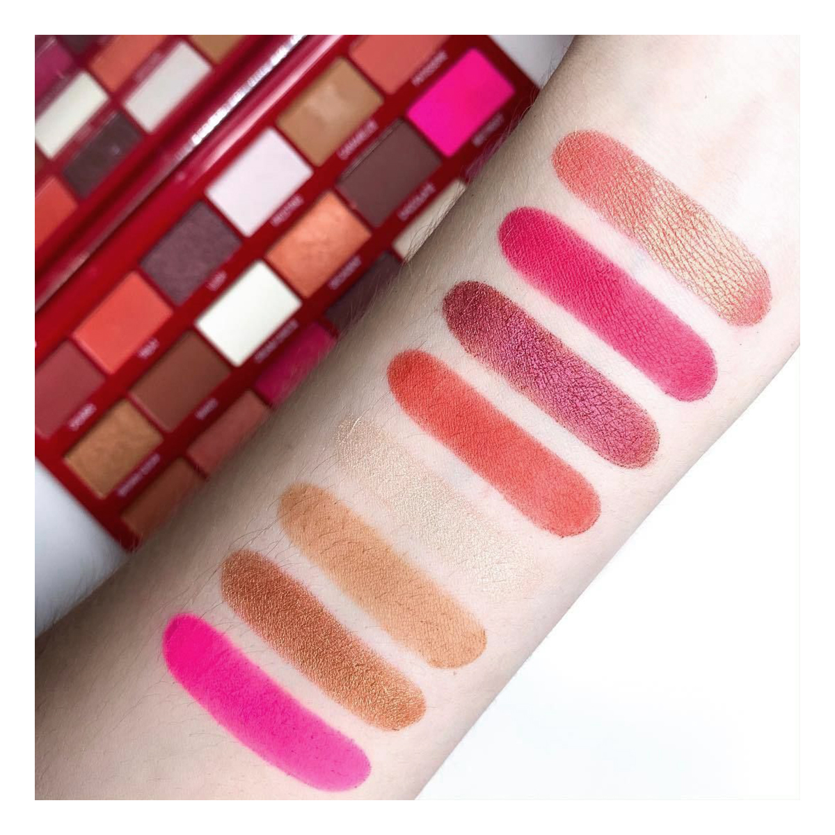 Η I Heart Revolution Red Velvet Chocolate Eyeshadow παλέτα αποτελείται από 18 ματ αλλά και shimmer σκιές σε ζεστές αποχρώσεις του πορτοκαλί, του ροδακινί, του φουξ, του σομόν έως και τις πιο ουδέτερες του μπεζ και του λευκού για να δημιουργήσετε πολλές και διαφορετικές εμφανίσεις.