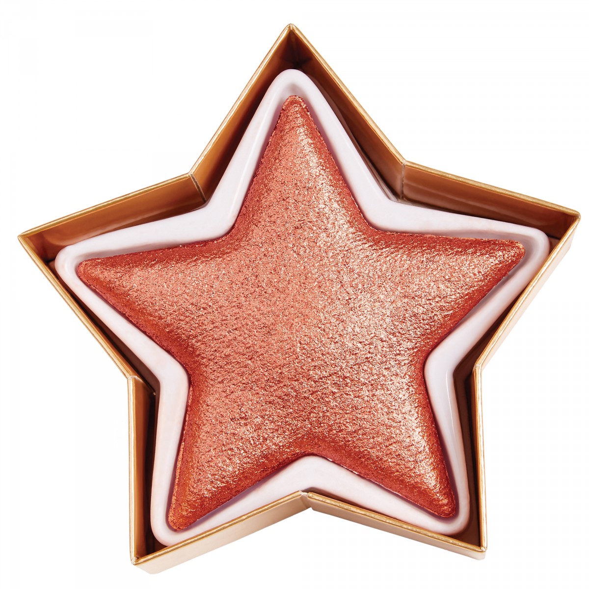 Ένα προϊόν highlighter σε σχήμα αστεριού και σε υπέροχη συσκευασία του χρυσού και του ροζ-χρυσό.