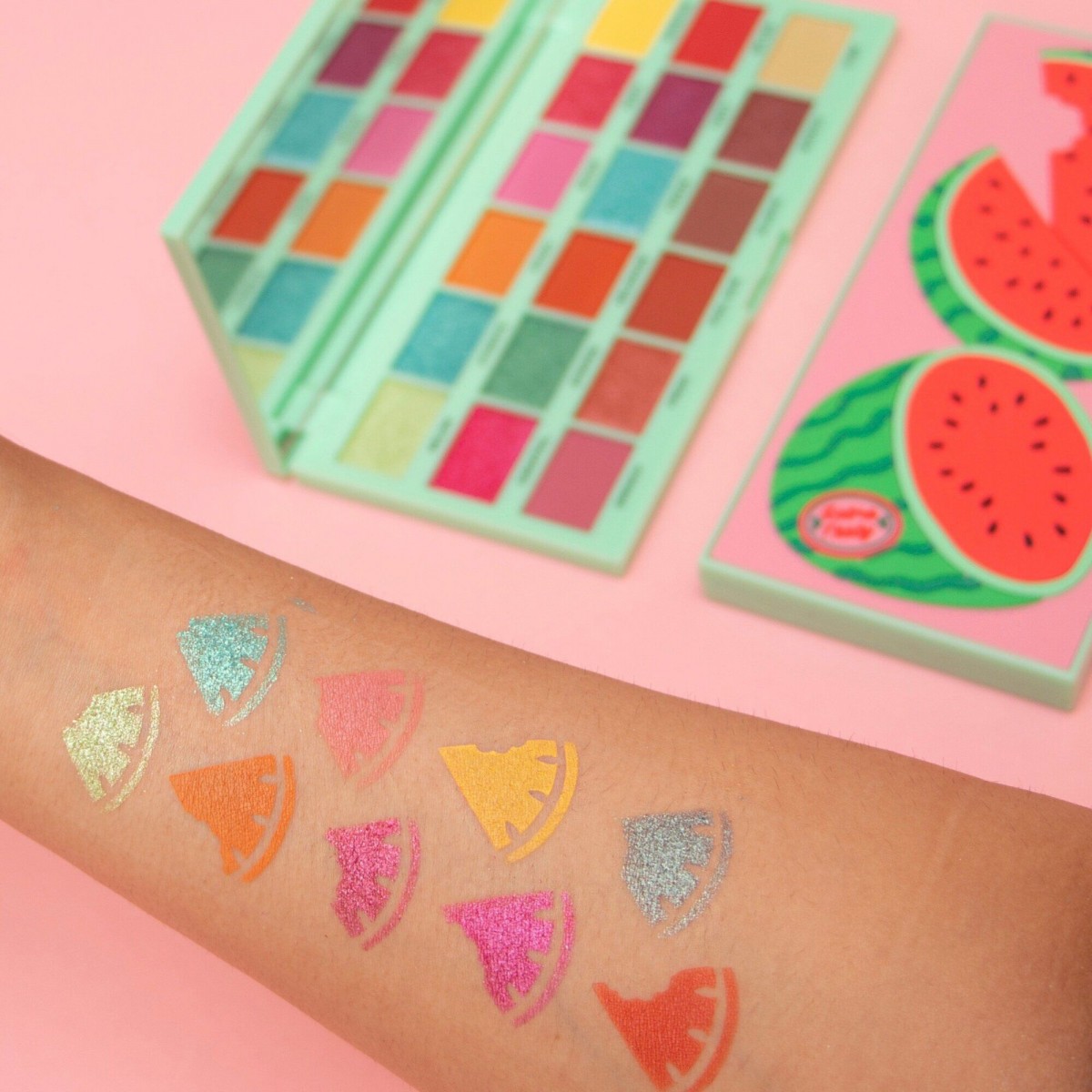 Η I Heart Revolution Tasty Eyeshadow Palette Watermelon αποτελείται από 18 ματ και shimmer σκιές σε αποχρώσεις του κίτρινου, του καφεκόκκινου, του σμαραγδί, του σιέλ και του καρπουζί εμπνευσμένες από το καλοκαίρι.