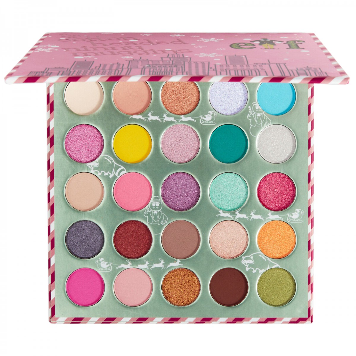I Heart Revolution X Elf Ninny Muggins Eyeshadow παλέτα αποτελείται από 25 σκιές σε βασικές γήινες αποχρώσεις αλλά και πιο φωτεινές ποπ σε συνδυασμό ματ, shimmer και μεταλλικών συνθέσεων για να έχετε τη δυνατότητα να δημιουργήσετε από απλές καθημερινές έως και πιο glamour εμφανίσεις.