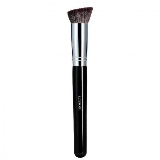 Το γωνιακό του σχήμα και οι πυκνές, φυσικές τρίχες προσαρμόζονται στο περίγραμμα του προσώπου και συνδυάζουν άψογα τα καλλυντικά για σμιλεμένο με ακρίβεια και άψογο φινίρισμα αποτέλεσμα.