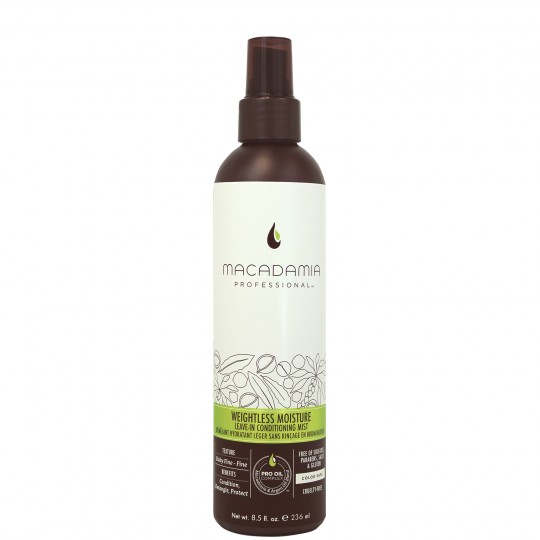 Το Macadamia Weightless Moisture Conditioning Mist είναι ένα πρωτοποριακό μαλακτικό με πολύ ελαφριά σύσταση και εμπουτισμένο με το αποκλειστικό Pro Oil Complex των Macadamia και Argan Oil για να ενισχύσει και να αναδομήσει τα ταλαιπωρημένα μαλλιά.