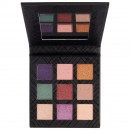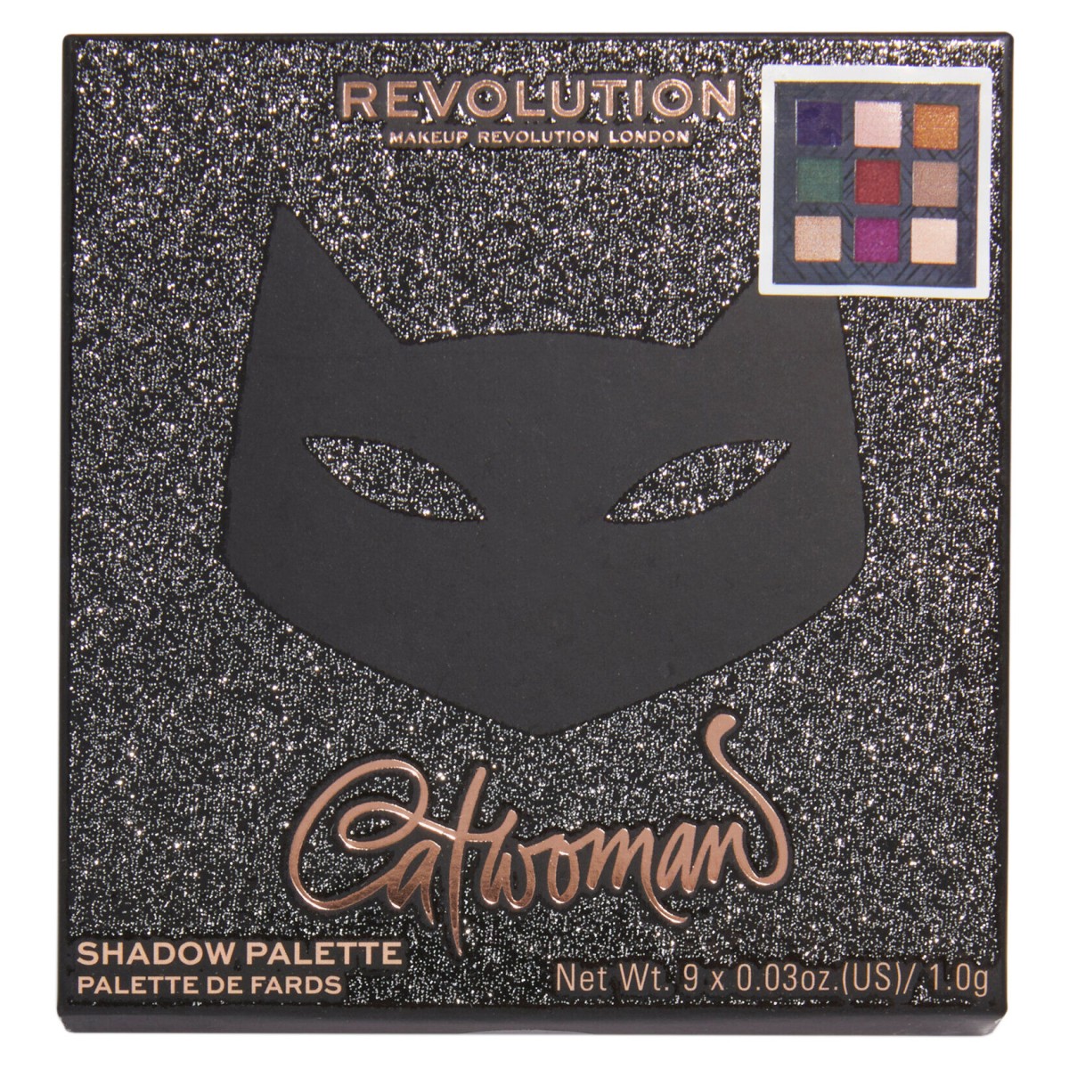 Η Makeup Revolution X DC Catwoman Jewel Thief Eyeshadow παλέτα περιέχει 9 σκιές σε τολμηρές αποχρώσεις μεταξύ των οποίων η CLAWS - χρυσό shimmer, η JEWELS - σμαραγδί shimmer και η MEOW - βαθύ μωβ shimmer.