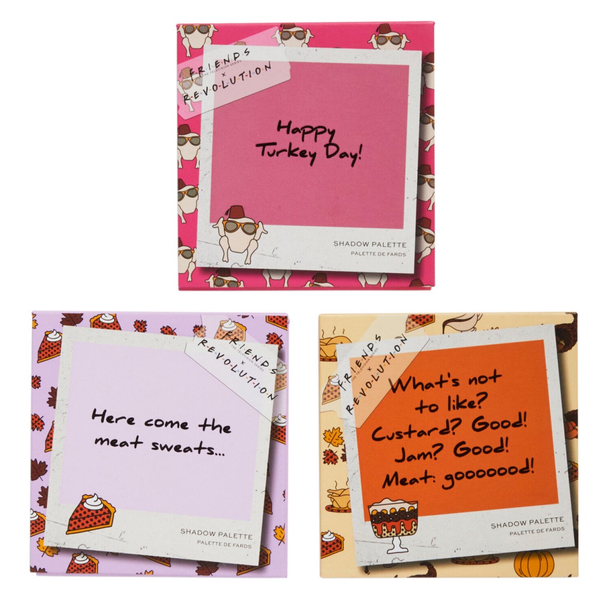 Το Makeup Revolution X Friends The One With All The Thanks Givings Eyeshadow Palette Set αποτελείται από 3 μικρές παλέτες σκιών με 9 σκιές ματ και shimmer στην κάθε παλέτα.