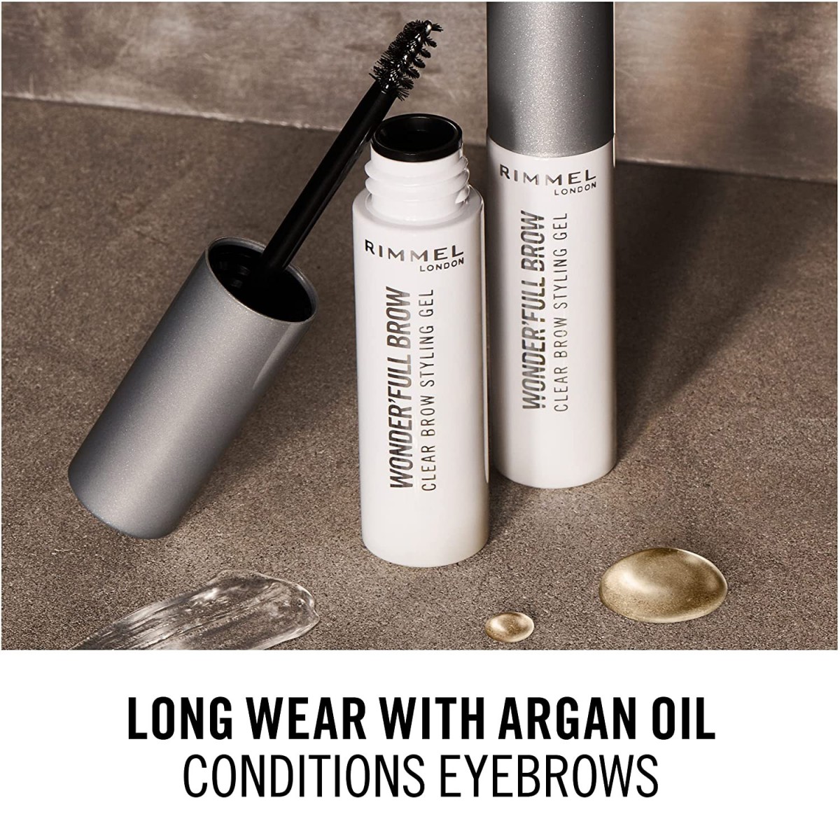 Η νέα φόρμουλα του Rimmel Wonder'Full Brow Gel - Clear είναι εμπουτισμένη με έλαιο Argan και καθορίζει τα φρύδια για ένα φυσικό φινίρισμα.