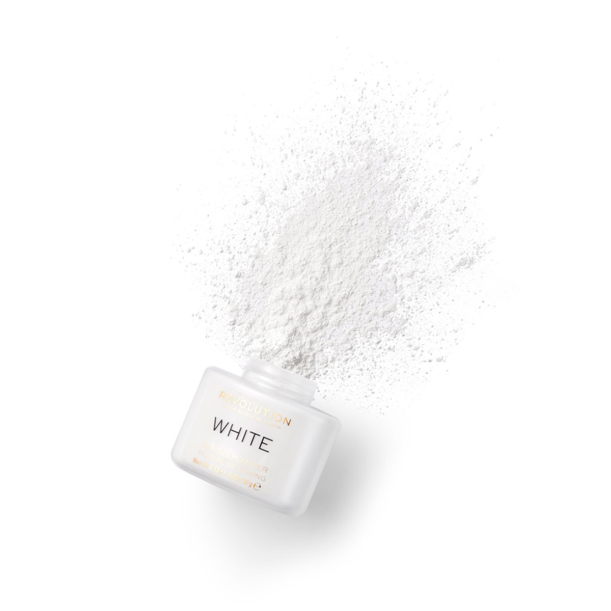- Αέρινη πούδρα με άσπρο τόνο για σταθεροποίηση του μακιγιάζ