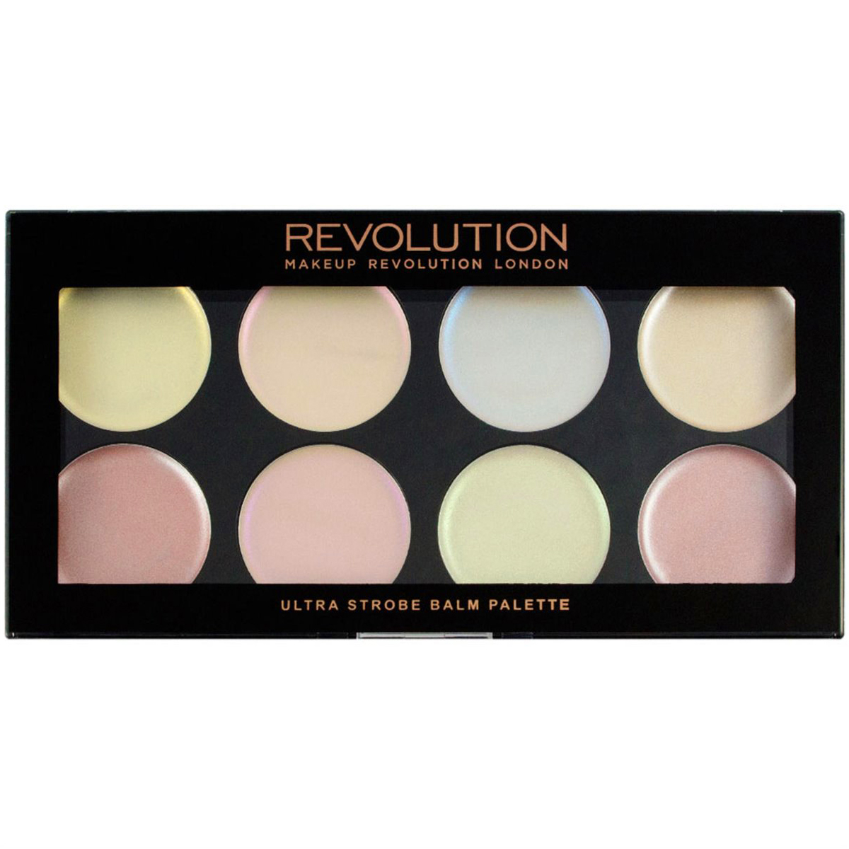 Η Makeup Revolution Ultra Strobe Balm παλέτα περιέχει 8 αποχρώσεις highlighter σε κρεμώδη μορφή.