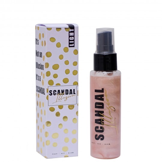 Scandal illusion Σπρέι προετοιμασίας και Σεταρiσματος Λάμψης Light: Μια τέλεια σαμπανιζέ λάμψη, για να κάνει τον τόνο του δέρματος λαμπερό και γυαλιστερό.