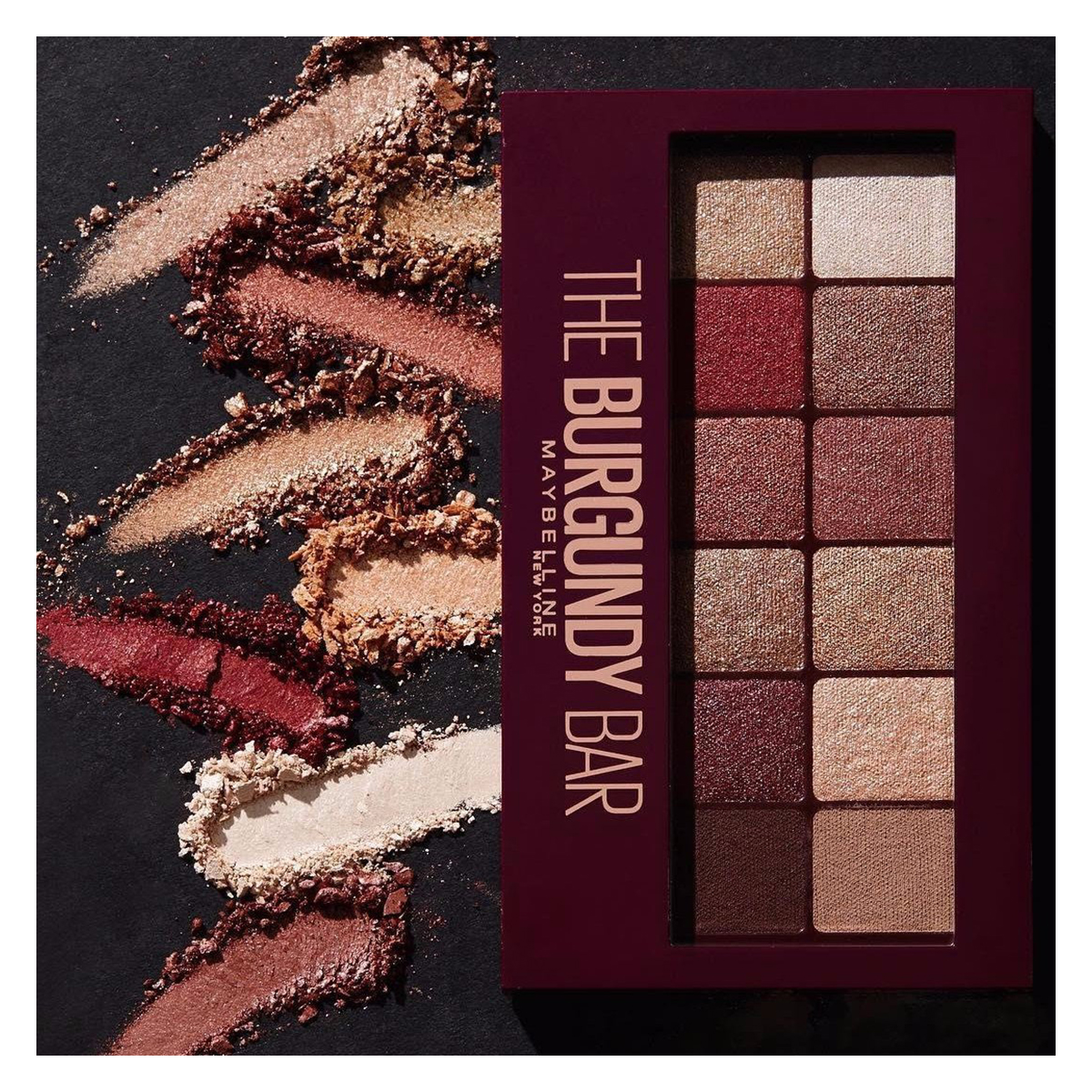 Η Maybelline The Burgundy Bar Eyeshadow Palette διαθέτει 12 σκιές ματιών σε βαθιά βουργουνδί απόχρωση με ελαφρύ shimmer.