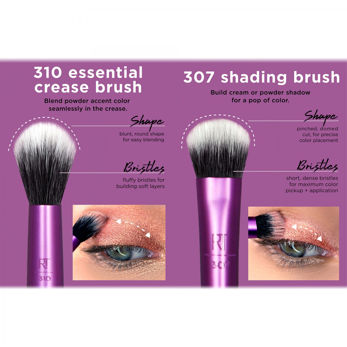 - Τρίχες: Κοντές, πυκνές τρίχες για τη μέγιστη τοποθέτηση της σκιάς και τη μέγιστη απόδοση χρώματος. - RT 310 Essential Crease Brush, Μπλεντάρετε το χρώμα της σκιάς στην πτυχή του ματιού.