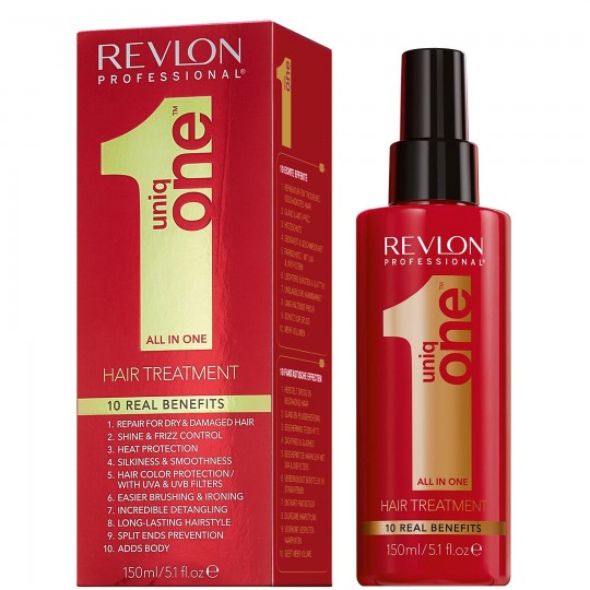 Η Revlon UniqOne Hair Treatment μάσκα σε μορφή σπρέι αναδομεί τα μαλλιά χάρη στα 10 πραγματικά οφέλη που προσφέρει: