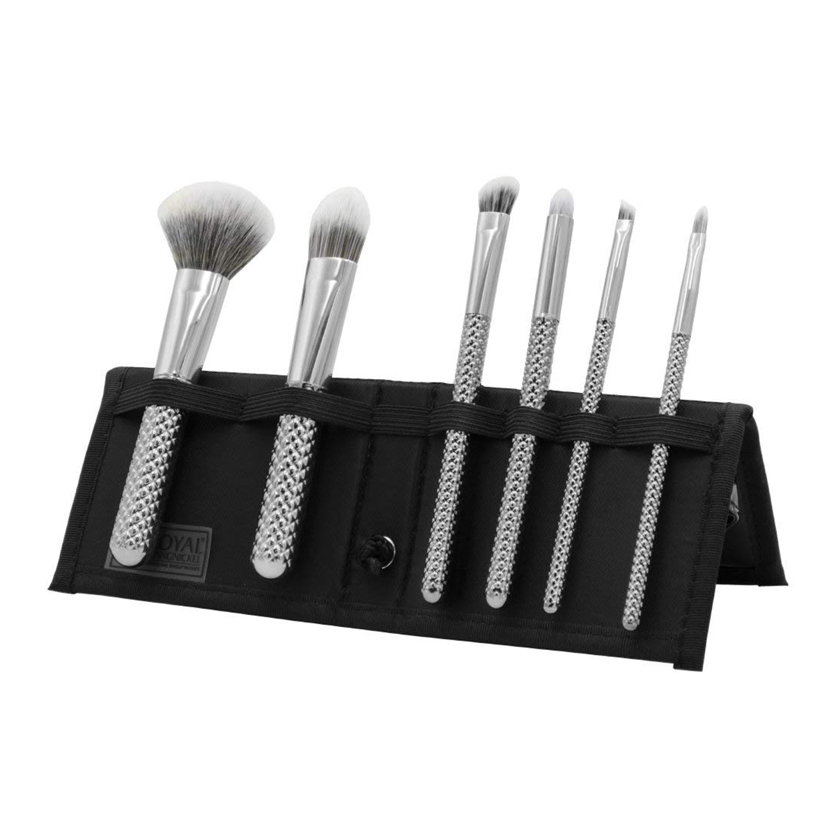 Σετ 6 πινέλων προσώπου με μεταλλική λαβή οργανωμένα σε θήκη ταξιδιού.