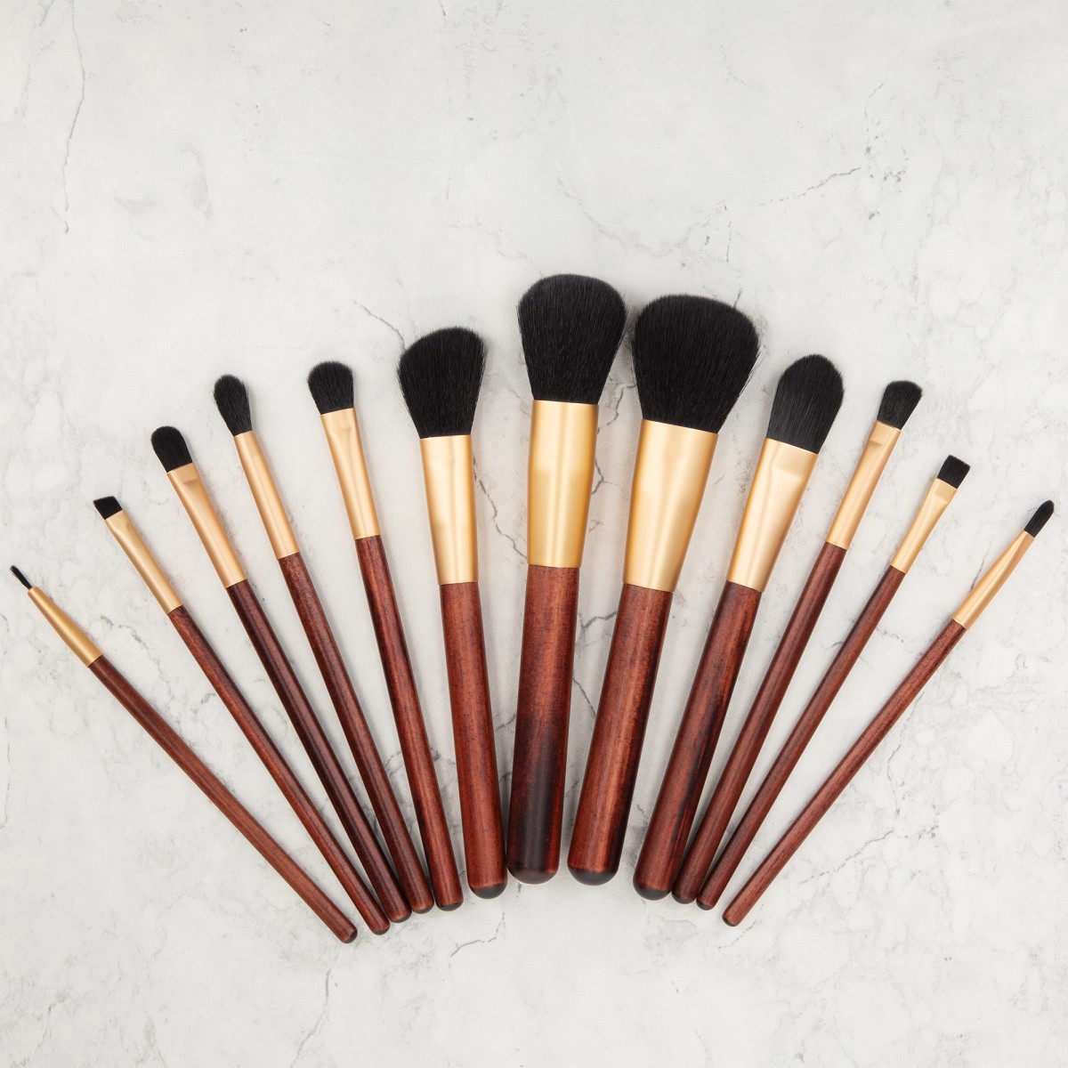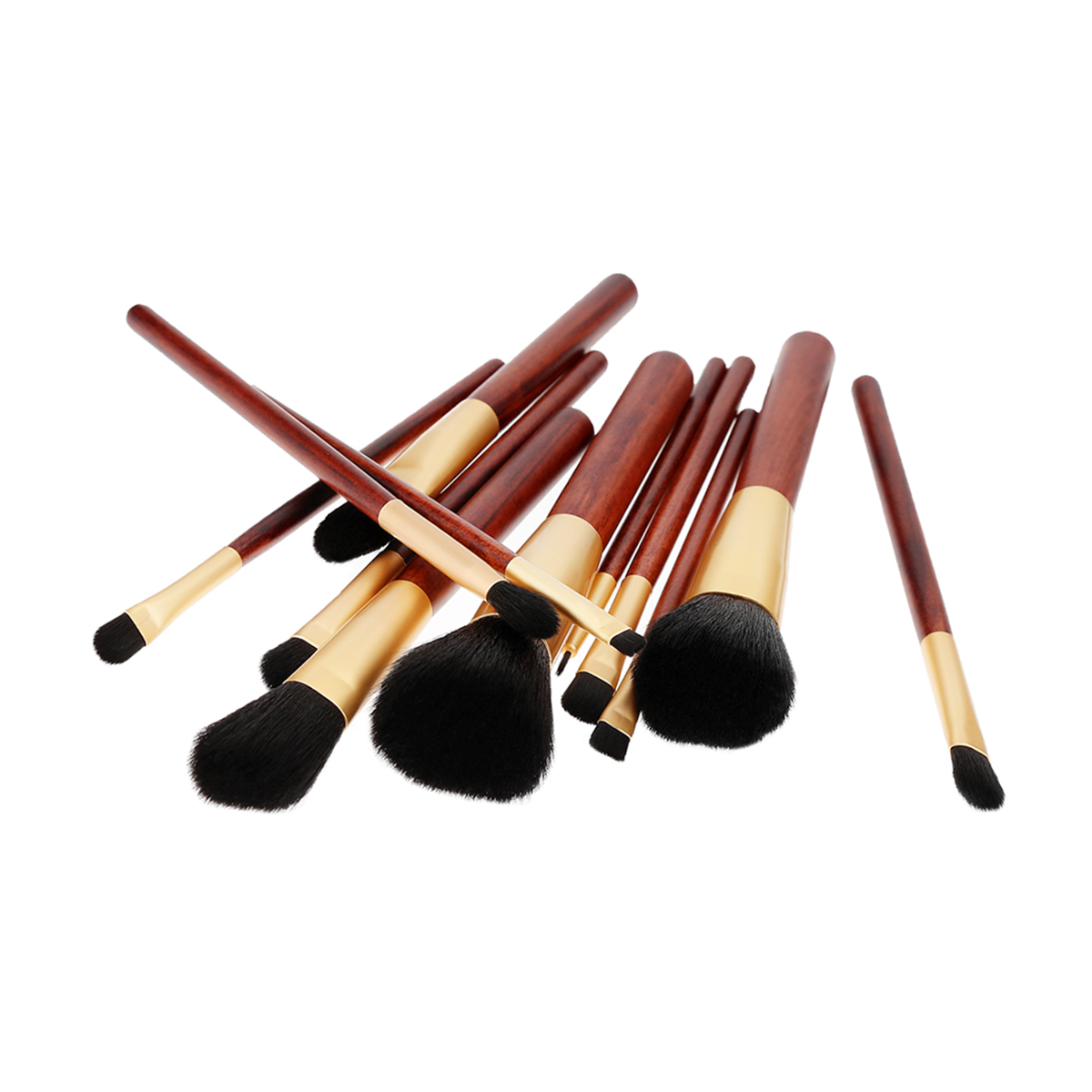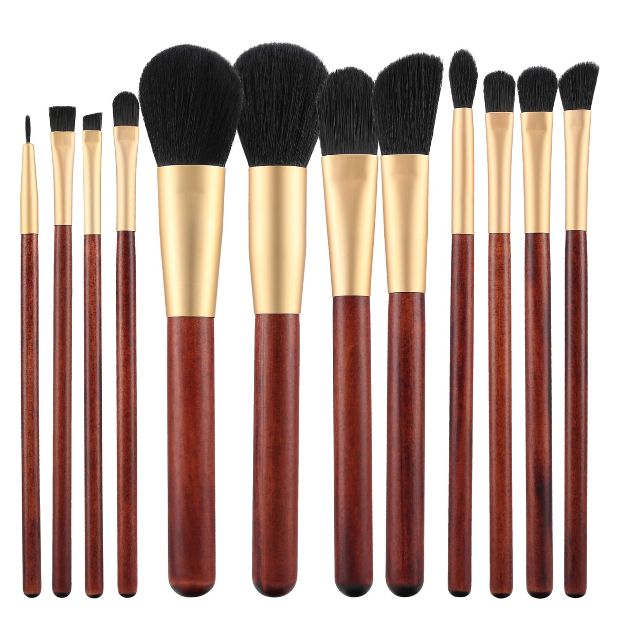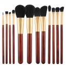 Σετ 12 πινέλων μακιγιάζ για καθημερινή χρήση κατασκευασμένα από συνθετικές ίνες με ξύλινη λαβή και χρυσές λεπτομέρειες.